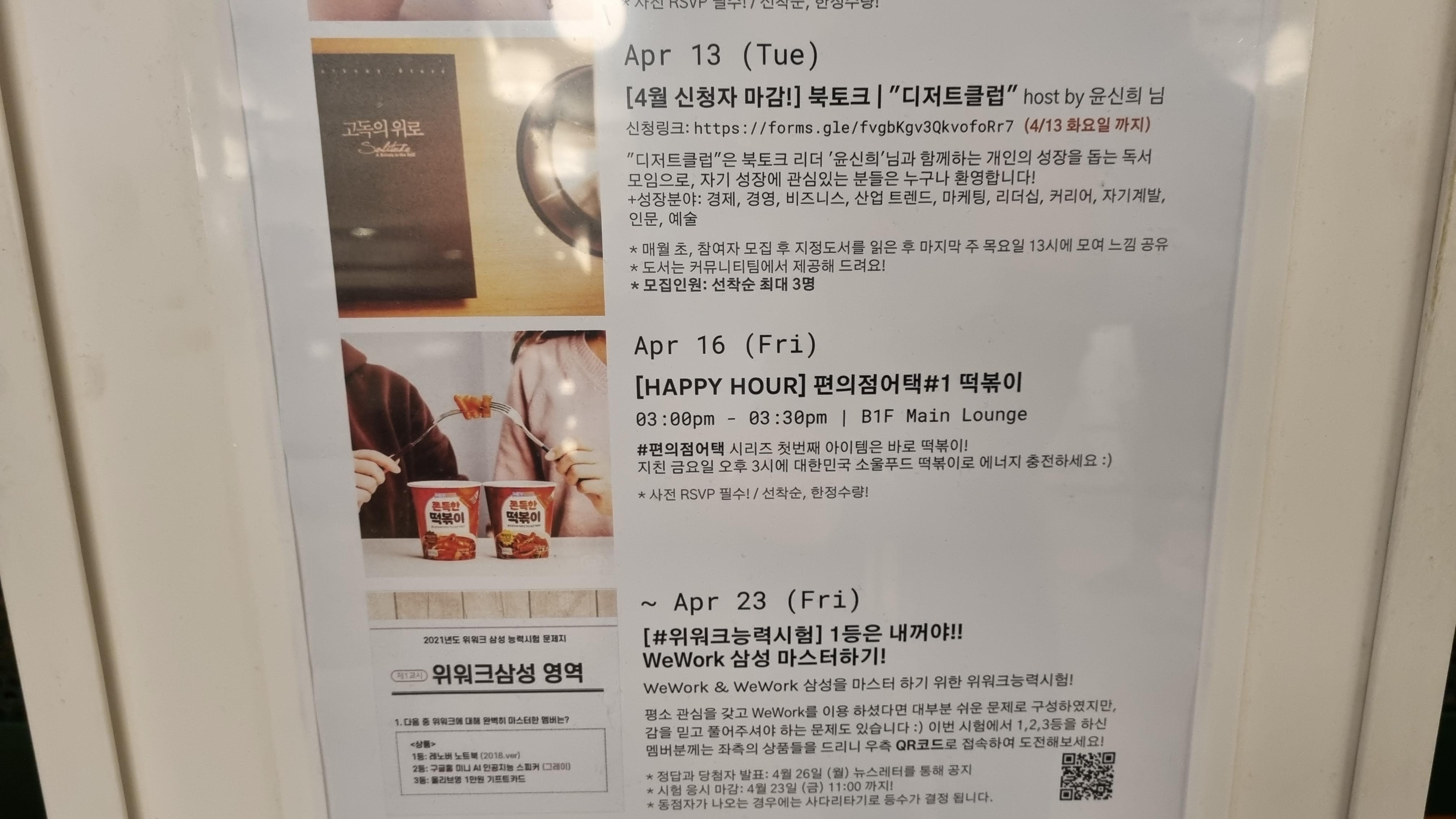 | 위워크 삼성점 해피아워 편의점 어택:핫바 (2) | 2021.04.24 |