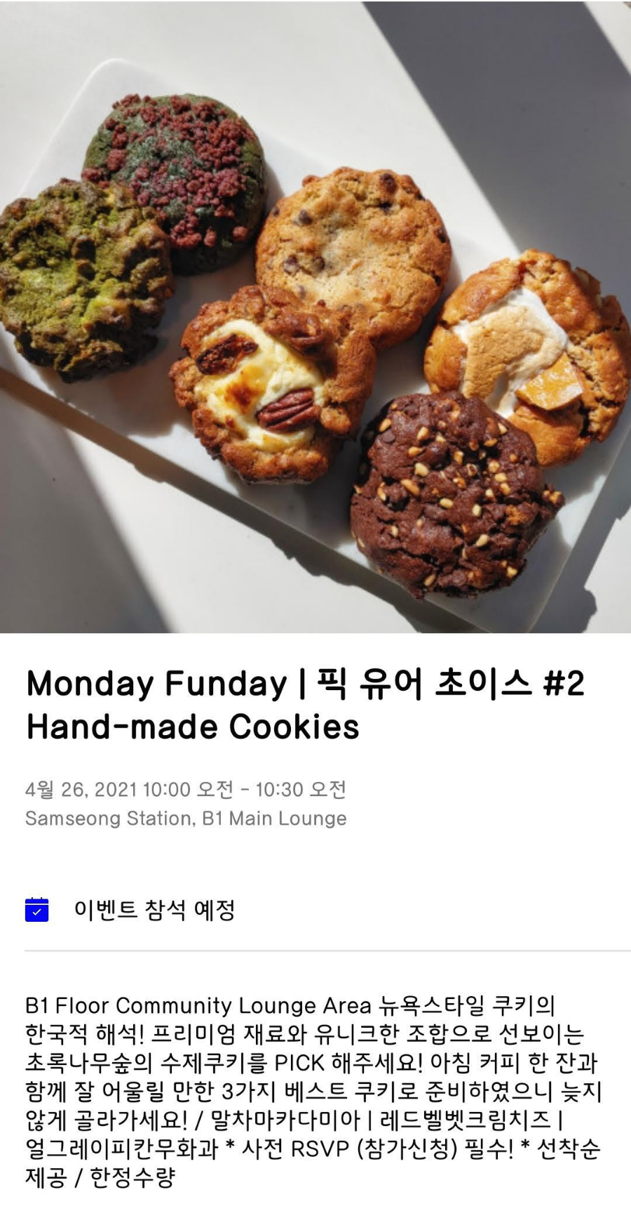 매주마다 이렇게 평소 먹어보지 못했던 제품들을 소개해주고 체험하게 해주는 것이 또 위워크이 장점 같아요. 그리고 올해 초에 새로 오신 지아매니저님께서 이벤트를 전담하시면서 더 다양해진 것 같아 좋습니다.