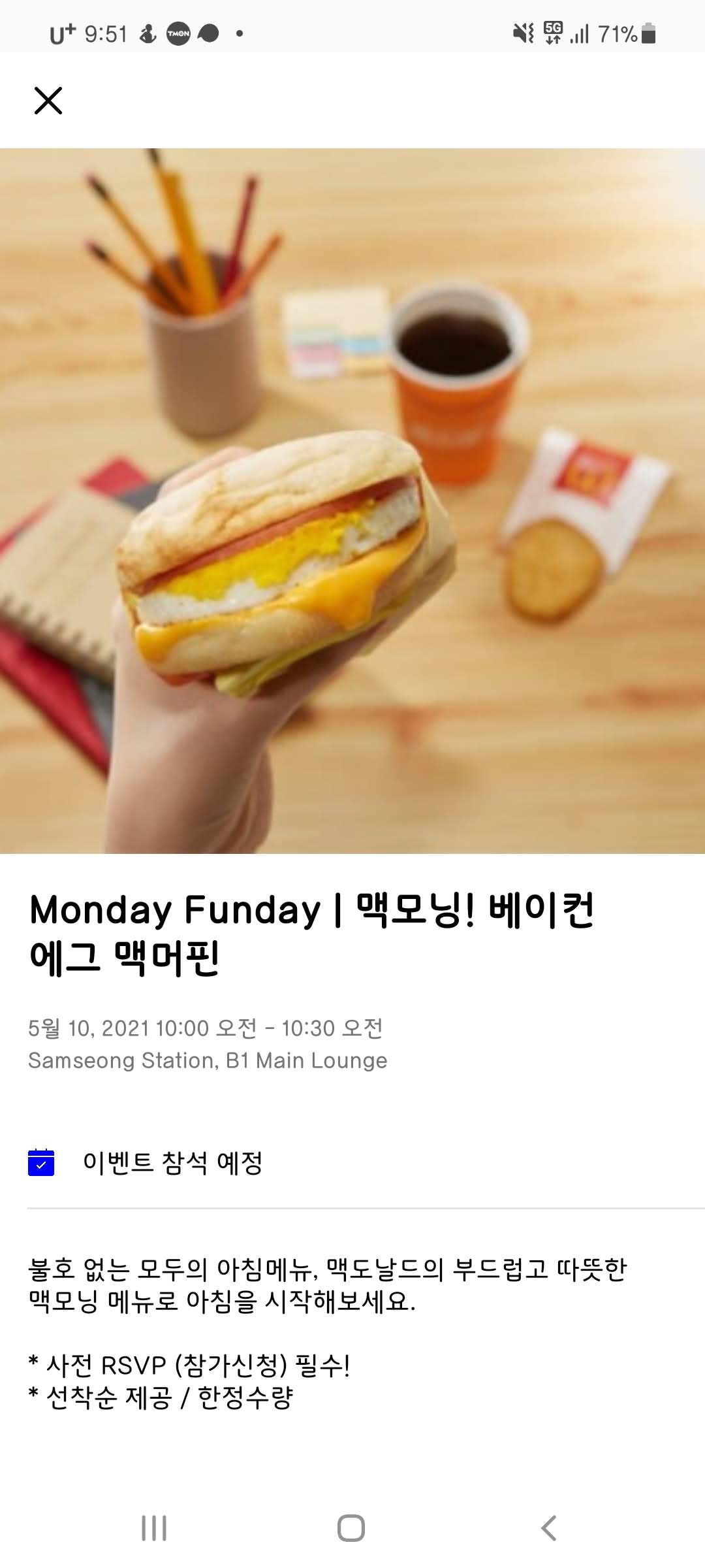 이번 주의위워크 삼성점 Monday Funday : 맥모닝! 베이컨 에그 맥머핀입니다.