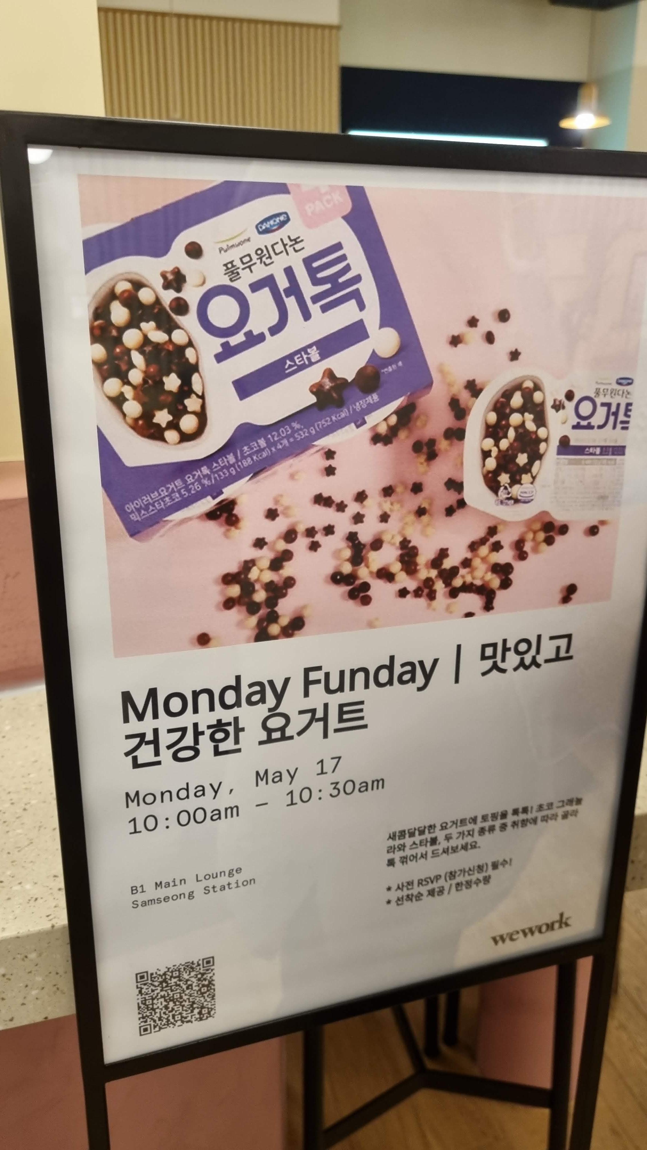 금주의 위워크 삼성점의 행복한 월요일 이벤트는 바로 맛있고 건강한 요거트인 요거톡이네요.