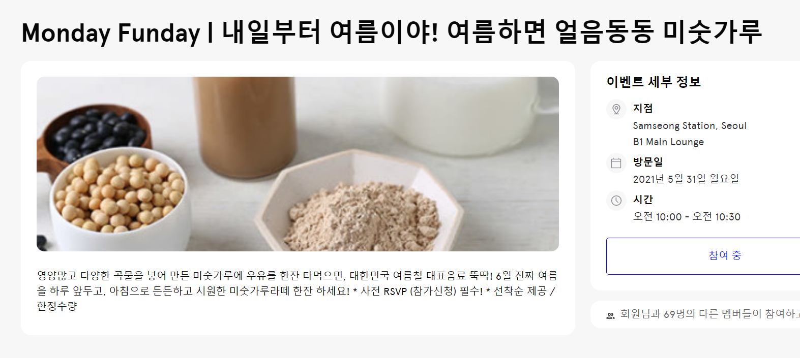 이번 주 삼성점의 먼데이 펀데이!는 바로 미숫가루입니다.