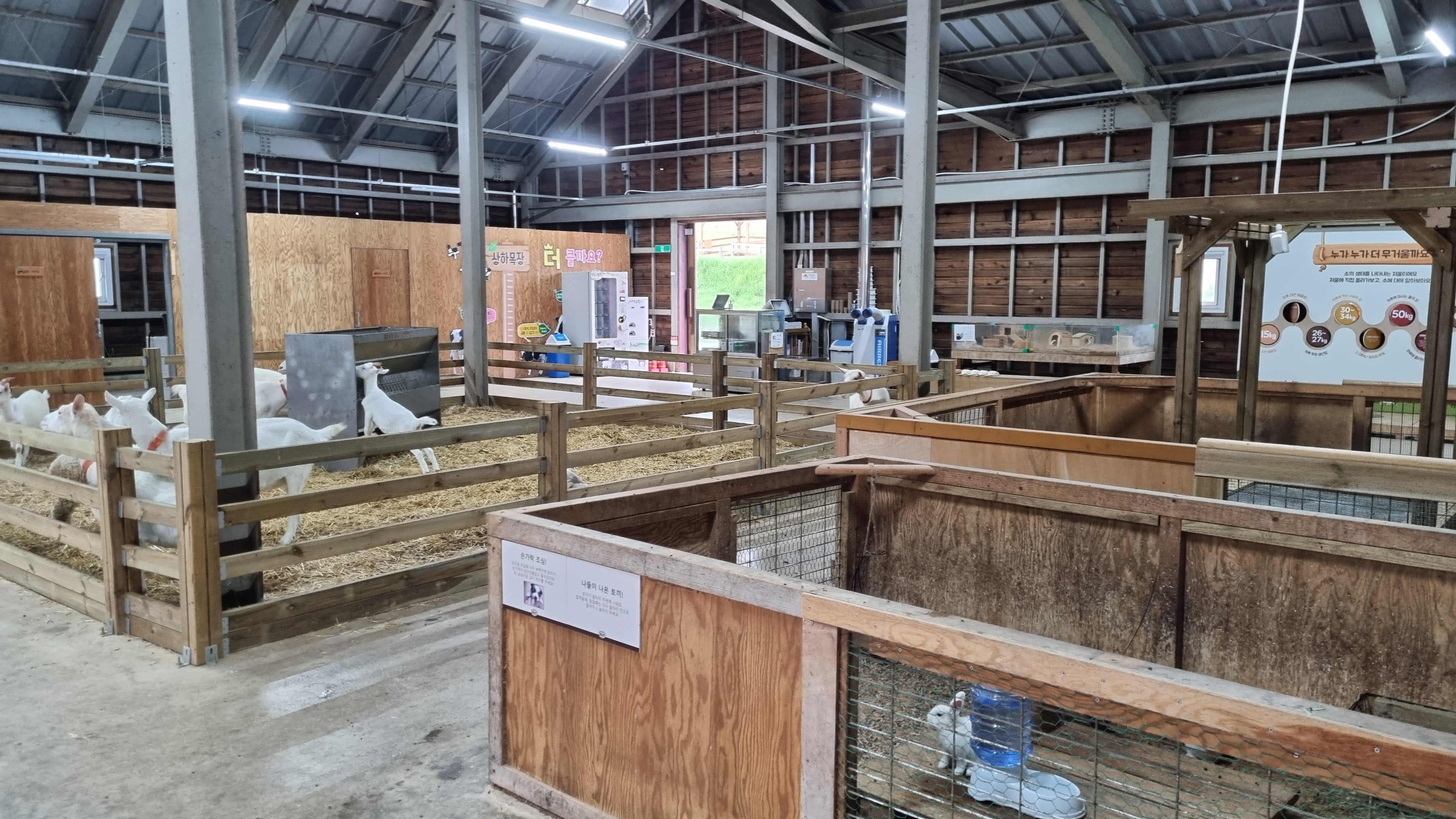 안에는 이렇게 다양한 동물들을 볼 수 있어요. 염소, 토끼, 병아리 등등.