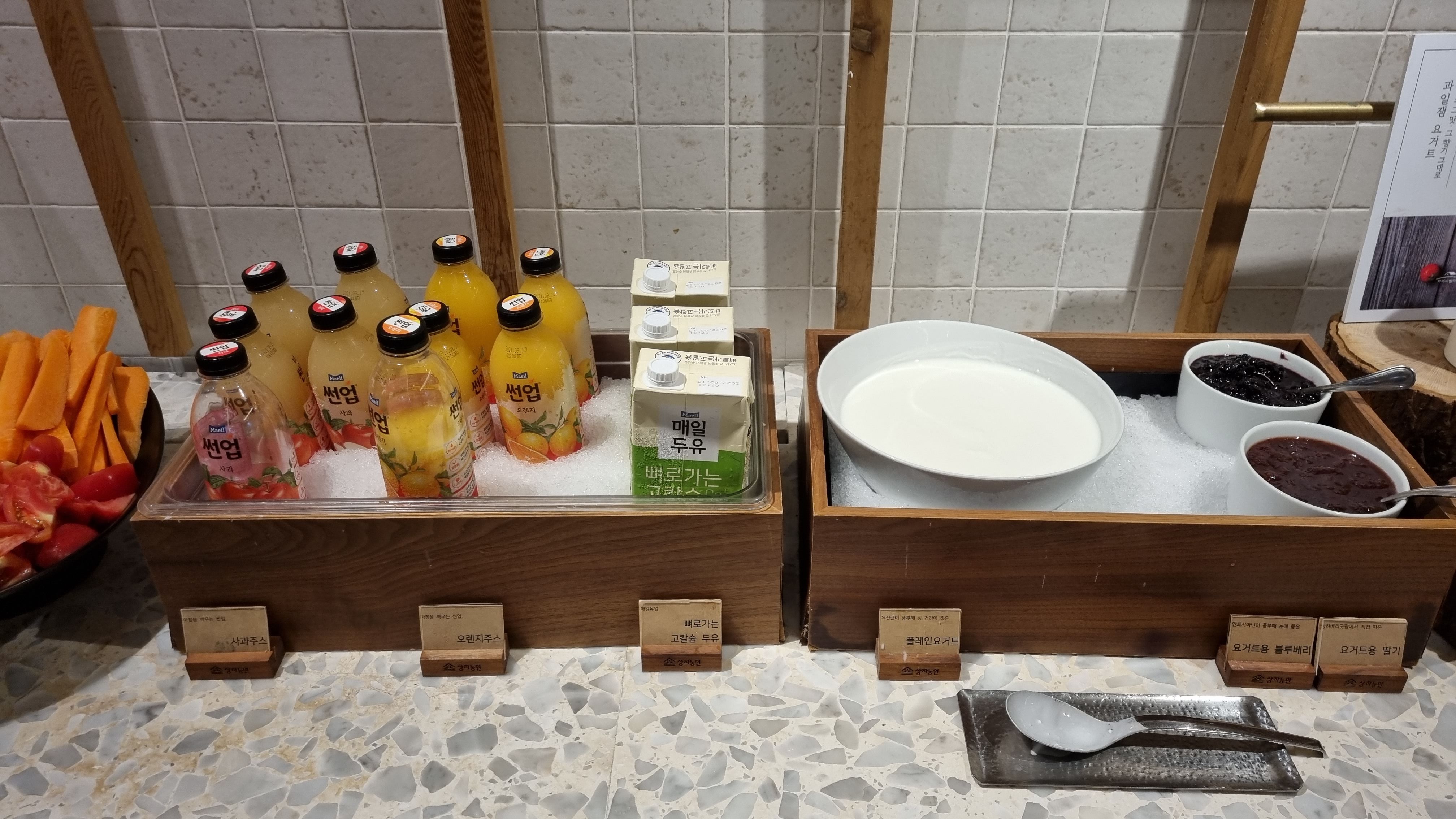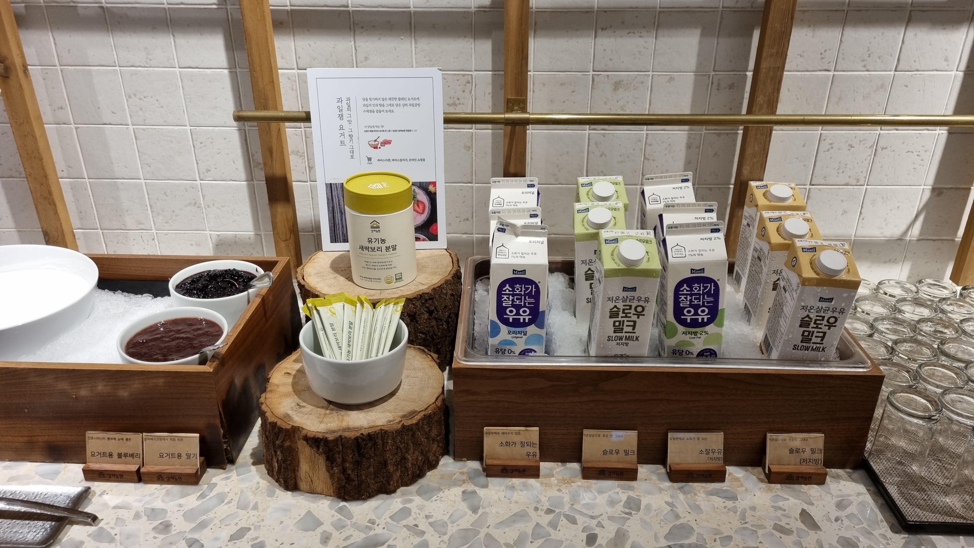 뷔페 메뉴는 거의 상하 농원에서 생산되는 제품들과 매일유업에서 나오는 쥬스, 우유 등 다양한 제품들을 드실 수 있습니다. 음식의 가지 수는 많지 않아도 정말 먹을만한 것들이 꽤 있었어요.