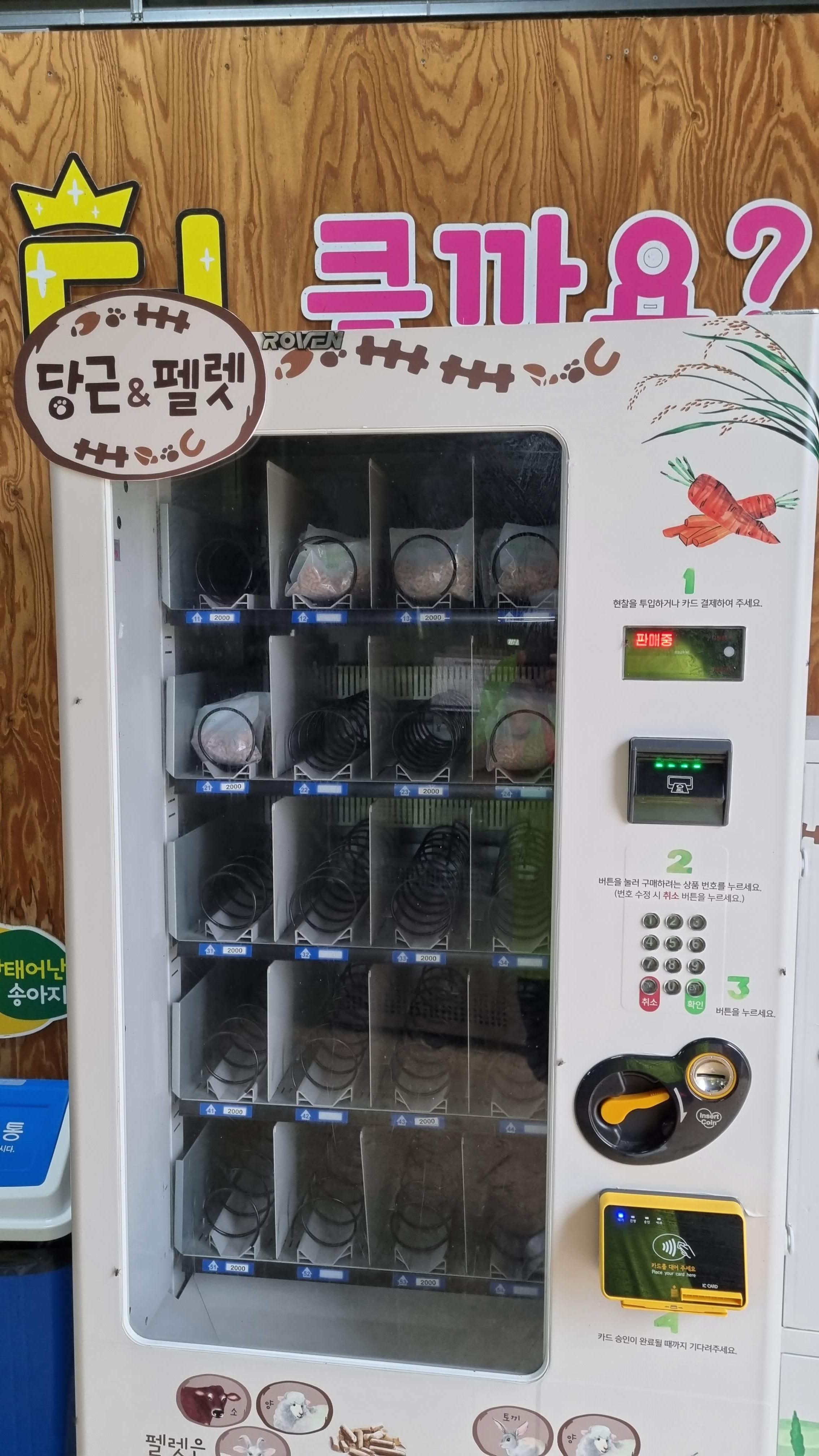 여기서 먹이를 구매해서 나눠주면 됩니다. 아침 일찍이라서 아직 셋팅이 덜됐어요. 당근 같은 것도 저기에 포함 됩니다.