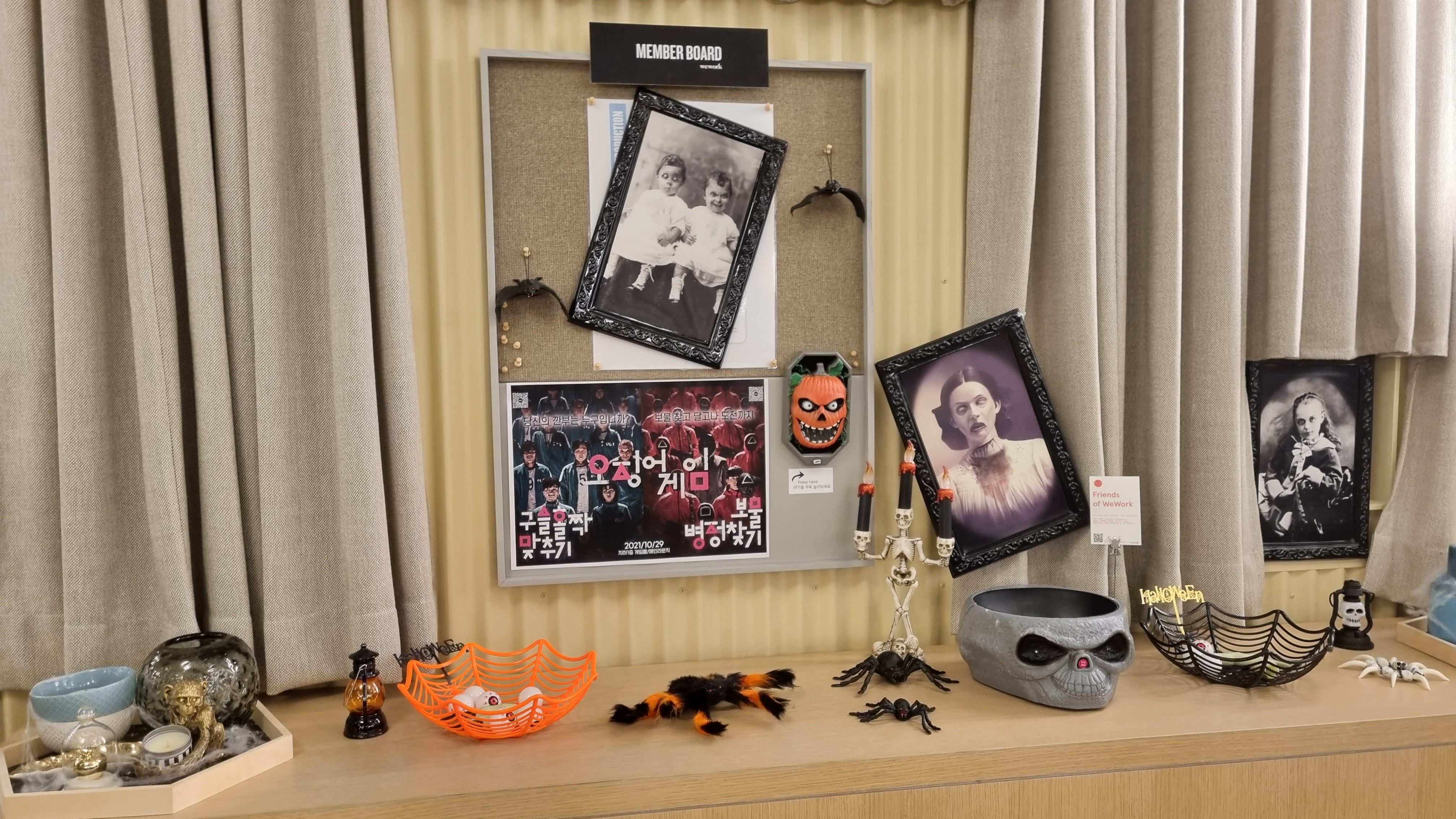 위워크 삼성점은 현재 할로윈 모드입니다. 지하 1층에 할로윈 장식이 되어 있어요.