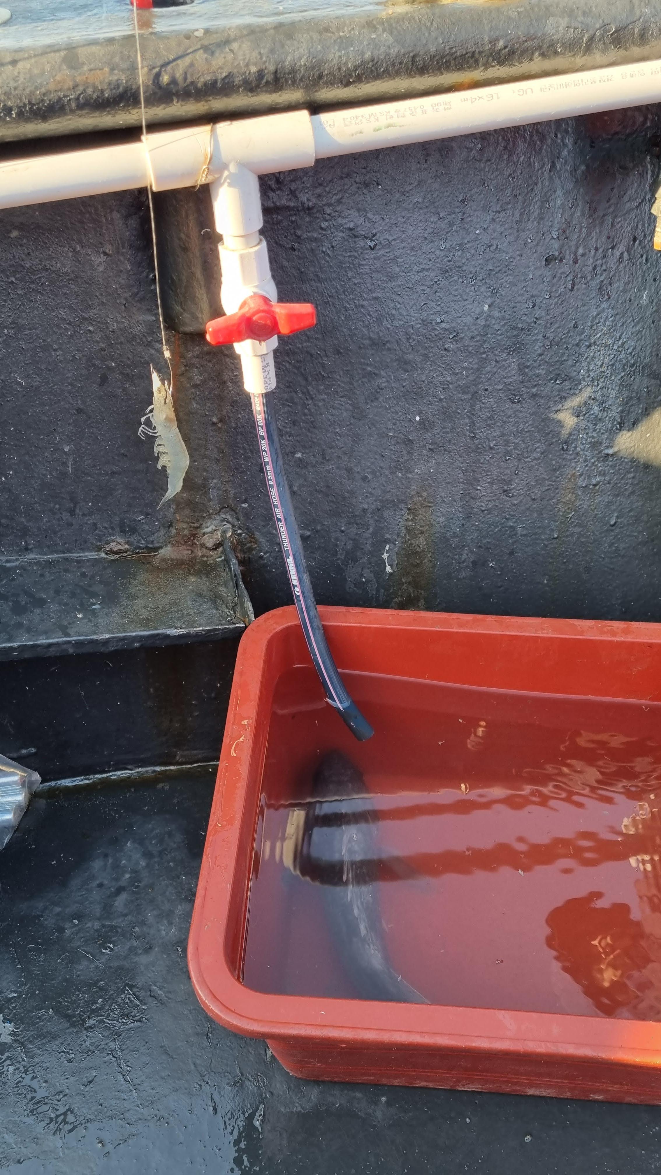 잡은 물고기는 바로 아래 이렇게 통이 있어서 물을 틀어서 담궈둘 수 있습니다.