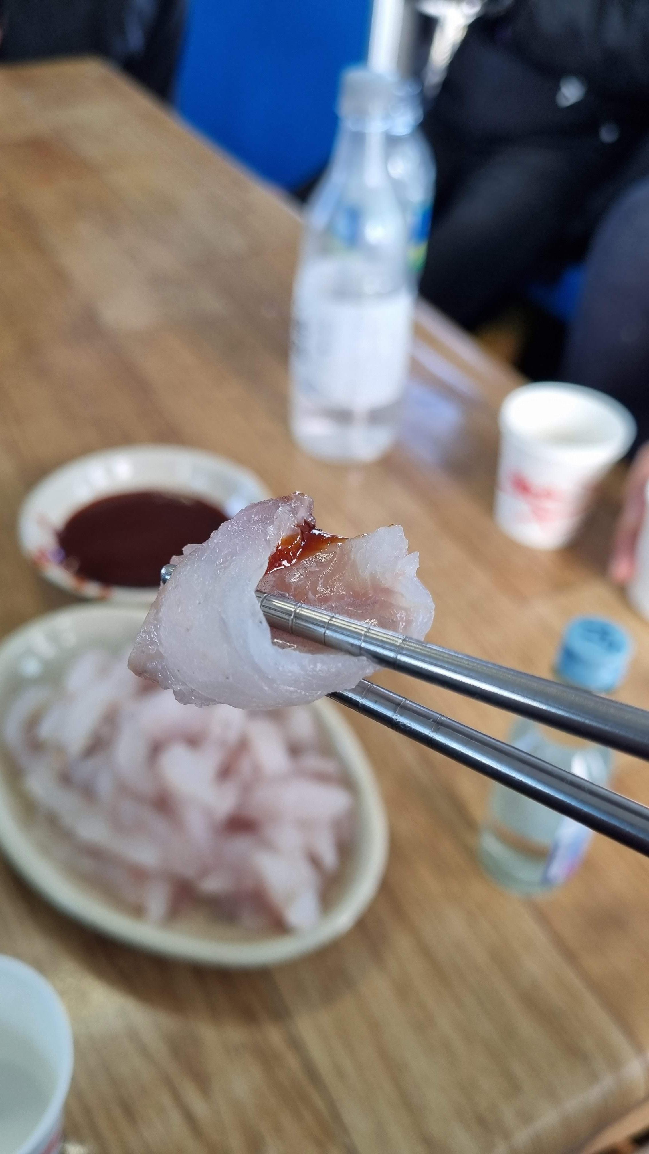 집에 가져와서 식구들과 함께 회를 썰어 먹었습니다.
