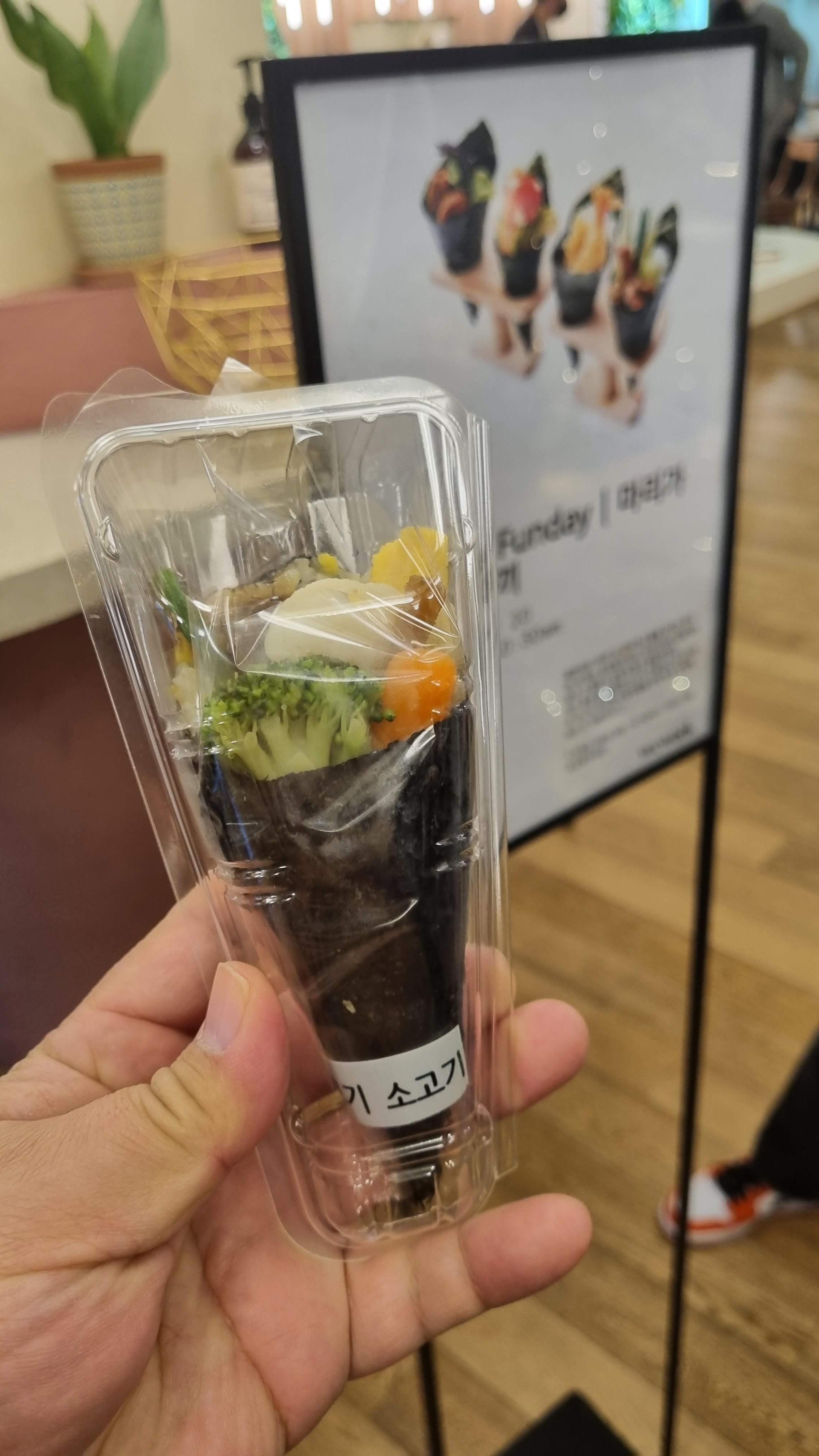 구성이 알찹니다. 브로컬리, 화이트브로컬리, 소고기, 당근, 계란 등 아주 건강하게 맛있는 마끼입니다.