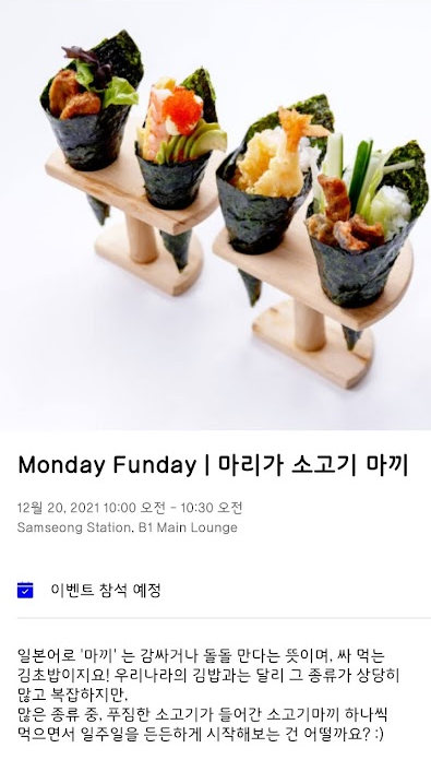 | 위워크삼성점 Monday Funday : 군침도는 밥도둑 명란게장밥! (0) | 2021.12.13 |