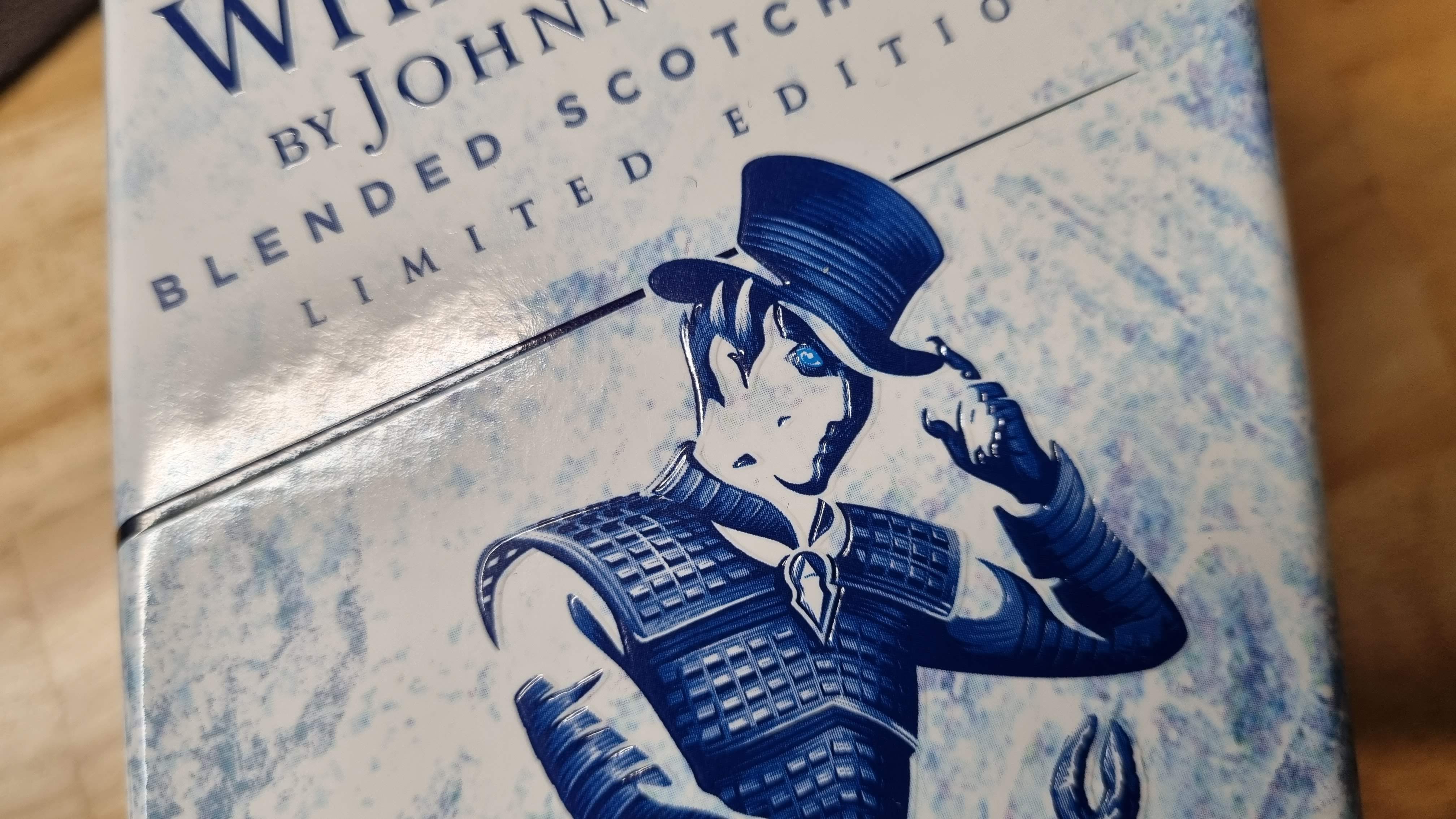 극중 나오는 화이트워커의 눈동자가 파란색이라서 조니 워커 캐릭터의 눈도 파란색으로 표현했구요.