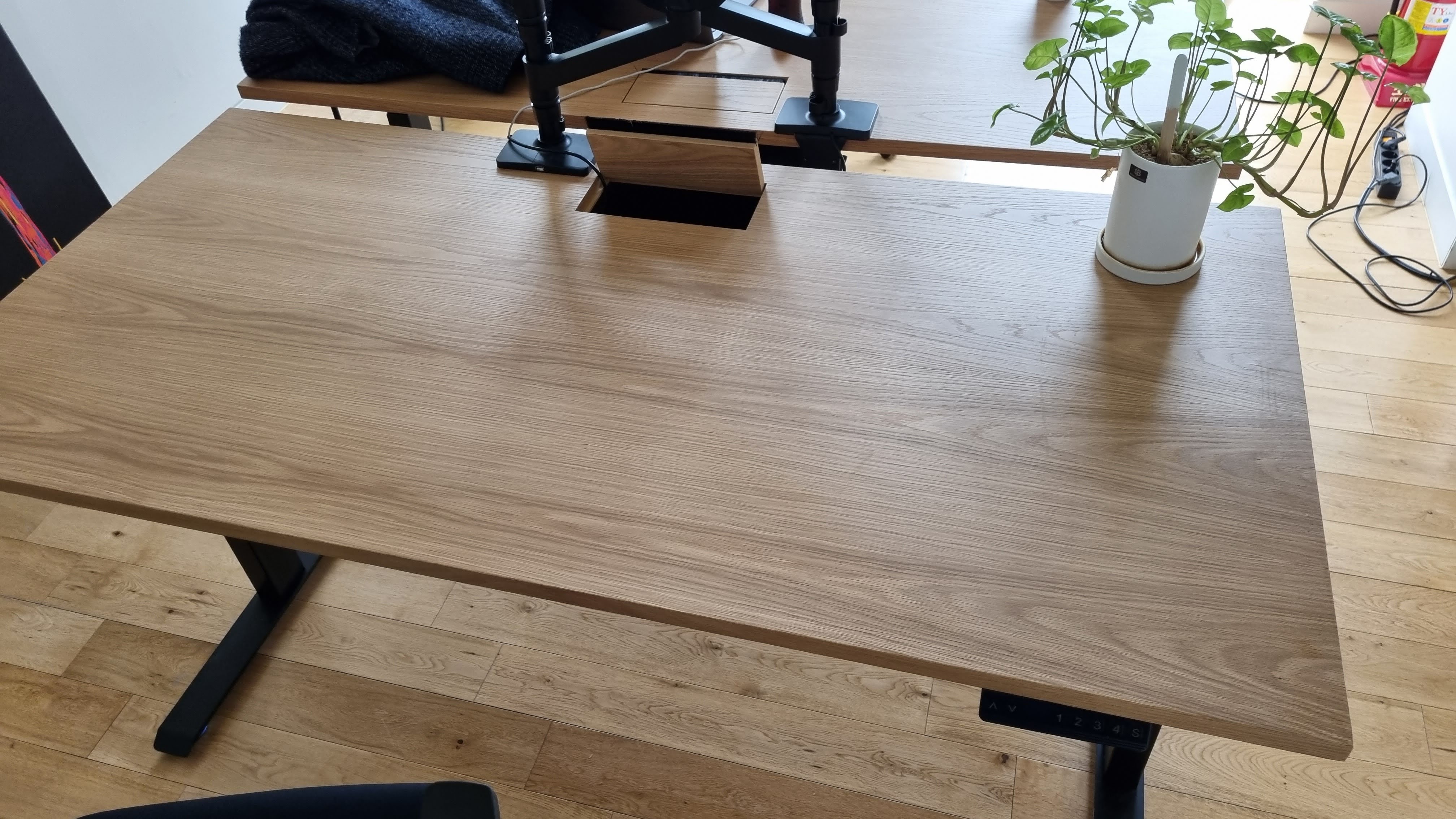 크기가 좀 애매해서 듀얼 모니터를 놓으면 상당히 좁습니다. 일반적으로 1200짜리를 쓰는 것 같더라구요.