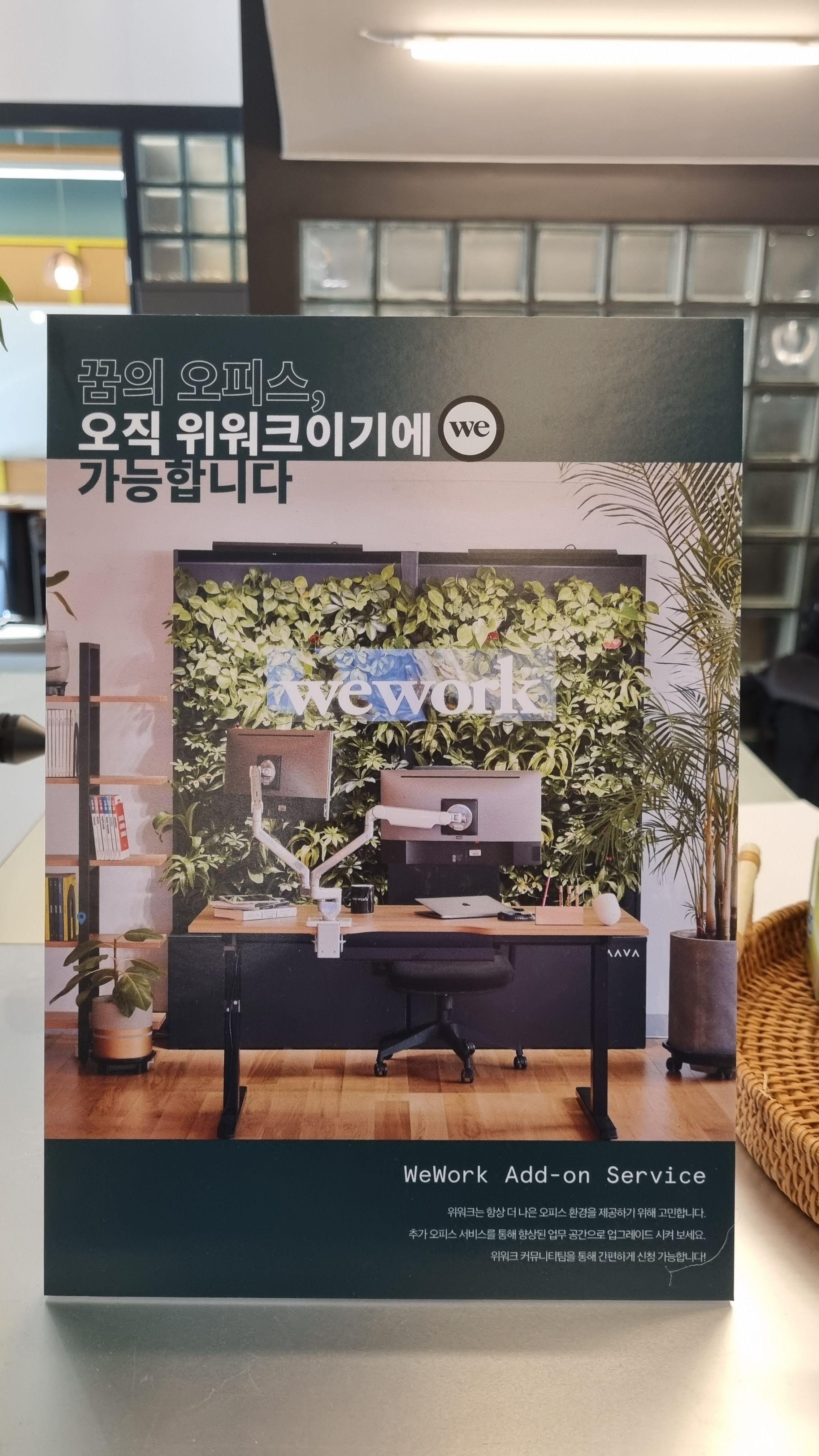 그런데 작년 말에 위워크 역삼점을 잠깐 방문했는데 이런 안내 팝업 이미지가 있더라구요.