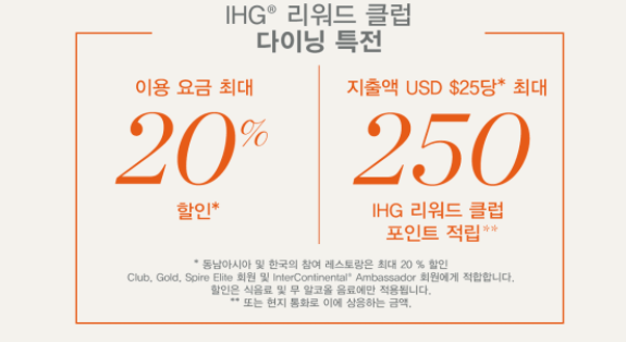 오늘은 IHG홈페이지에서 발표한 리워드클럽 다이닝 특전에 대해서 알려드릴까 합니다.