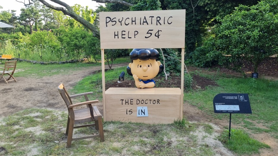 카페 밖에는 루시의 레몬에이드 스탠드에서 정신적 치료를 해주는 의사역할을 하고 있네요. ㅎㅎㅎ 5센트면 저렴한데요?