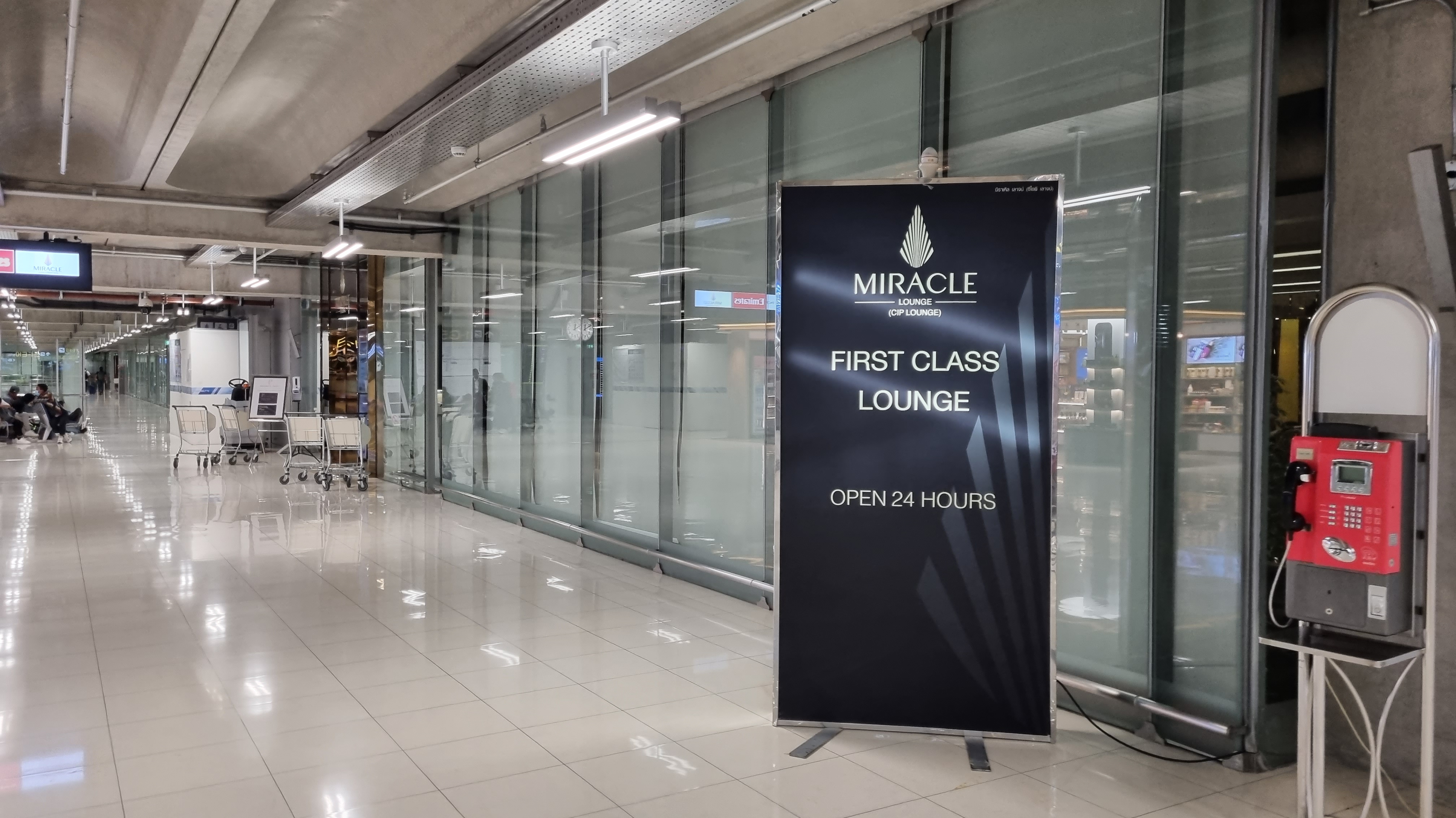 미라클 퍼스트클래스 라운지 외부 모습(Miracle First class lounge). 운영은 24시간입니다.