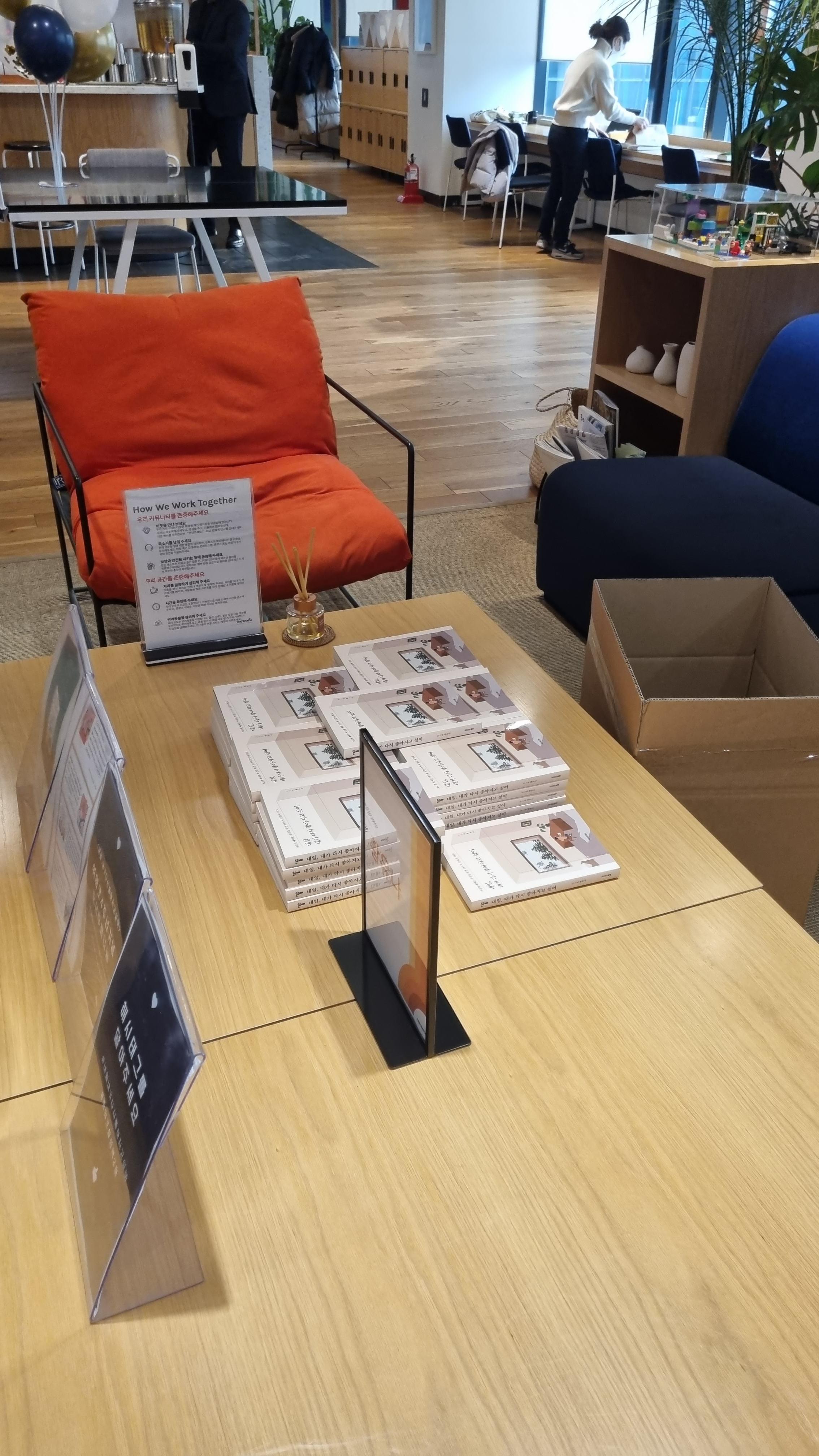 책을 나눠주던 분이 계셨는데 황유나작가님이라고 하네요. 예쁜 포장과 함께 해시테그 이벤트가 있었습니다.