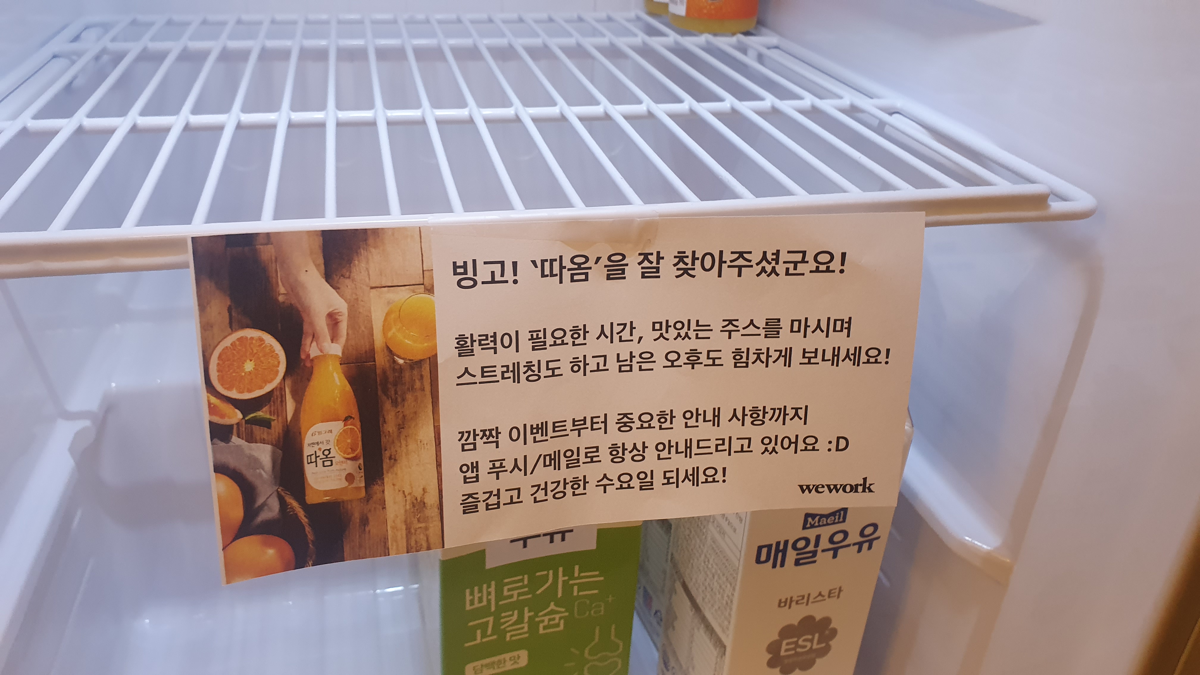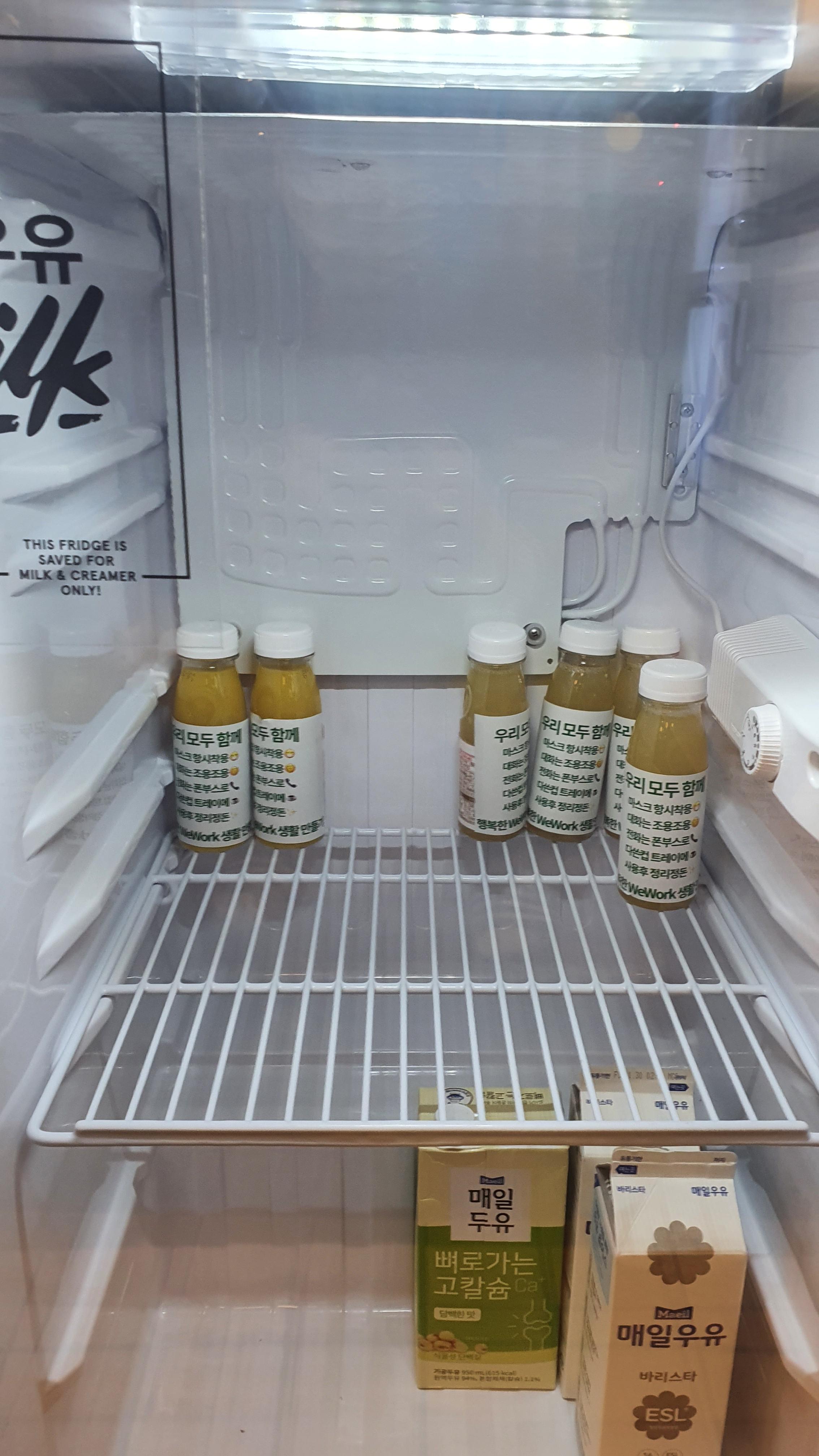 바로 우유냉장고 안에 있습니다. 우유냉장고가 따로 있는 곳은 13층과 5층에 있거든요.