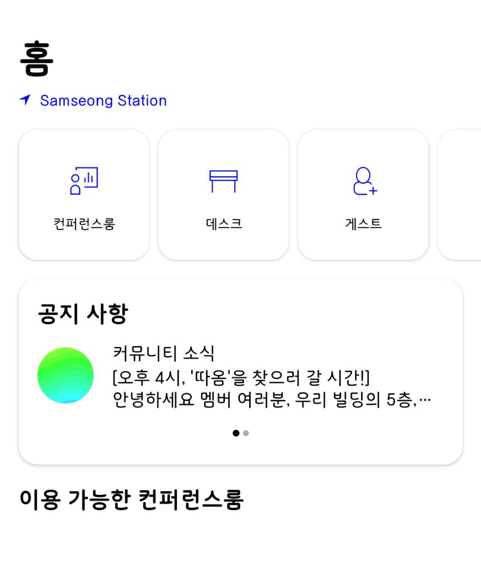 위워크 알람이 오는 4시경에 실행을 해보니 아래와 같이 공지가 올라와 있습니다.