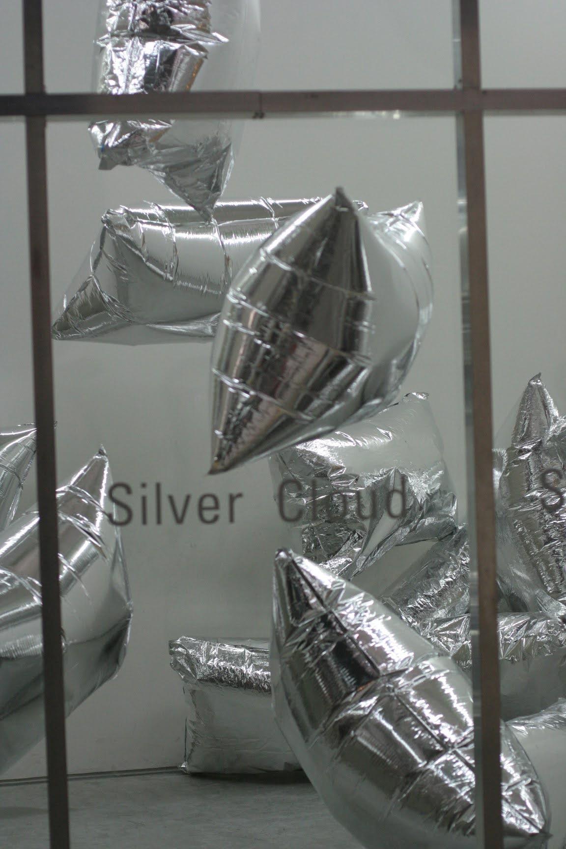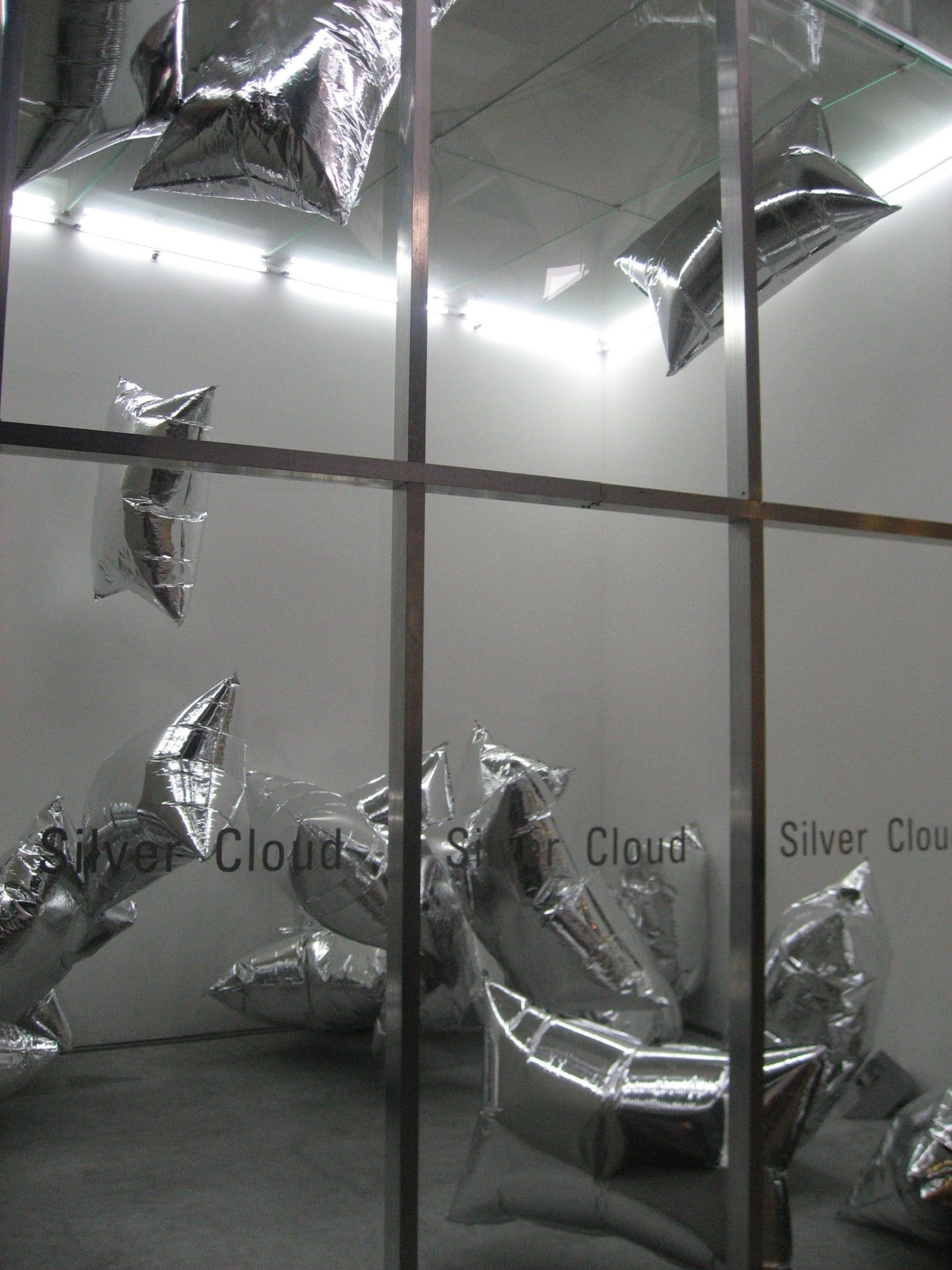 실버 클라우드 작품은 은박 풍선에 바람을 넣어서(헬륨가스 아님) 구석에 있는 선풍기가 바람을 불어 계속 불규칙하게 둥둥 떠다니는 모습을 볼 수 있게 한 작품입니다.