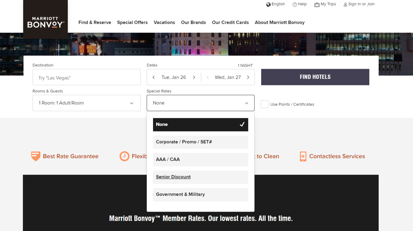 글로벌 프렌차이즈 호텔들의 예약을 온라인상에서 예약 할 때 다양한 요금제도가 있는데 이 것중 하나가 시니어 요금입니다.