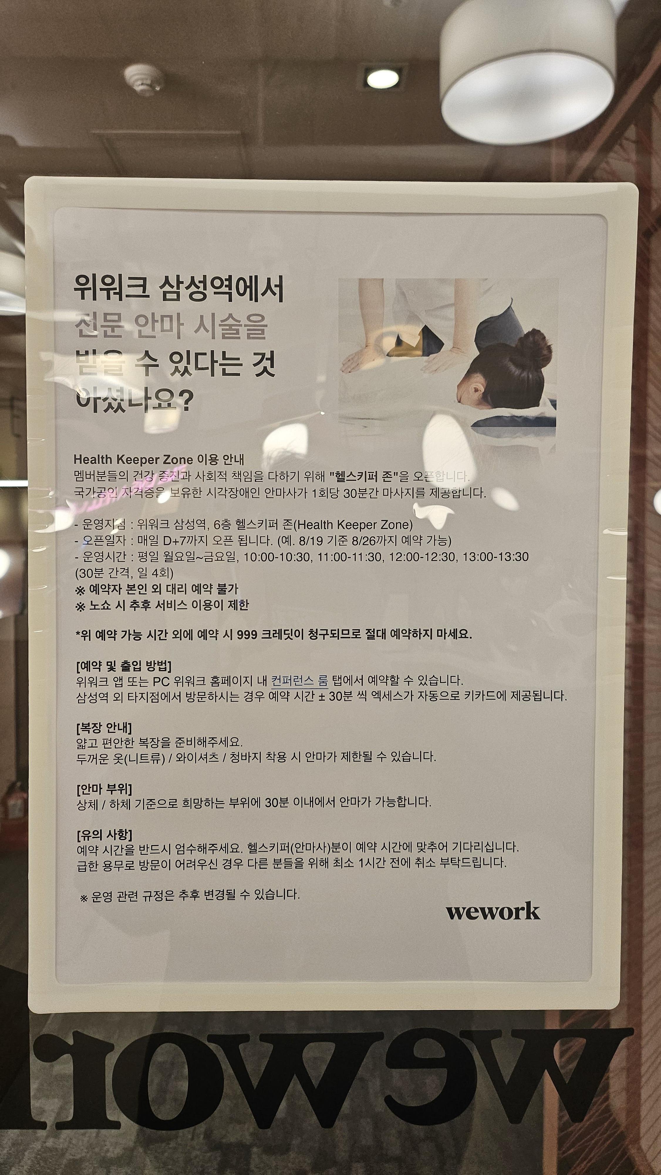위워크 삼성점에서 헬스키퍼 서비스 제공이 시작되었습니다.