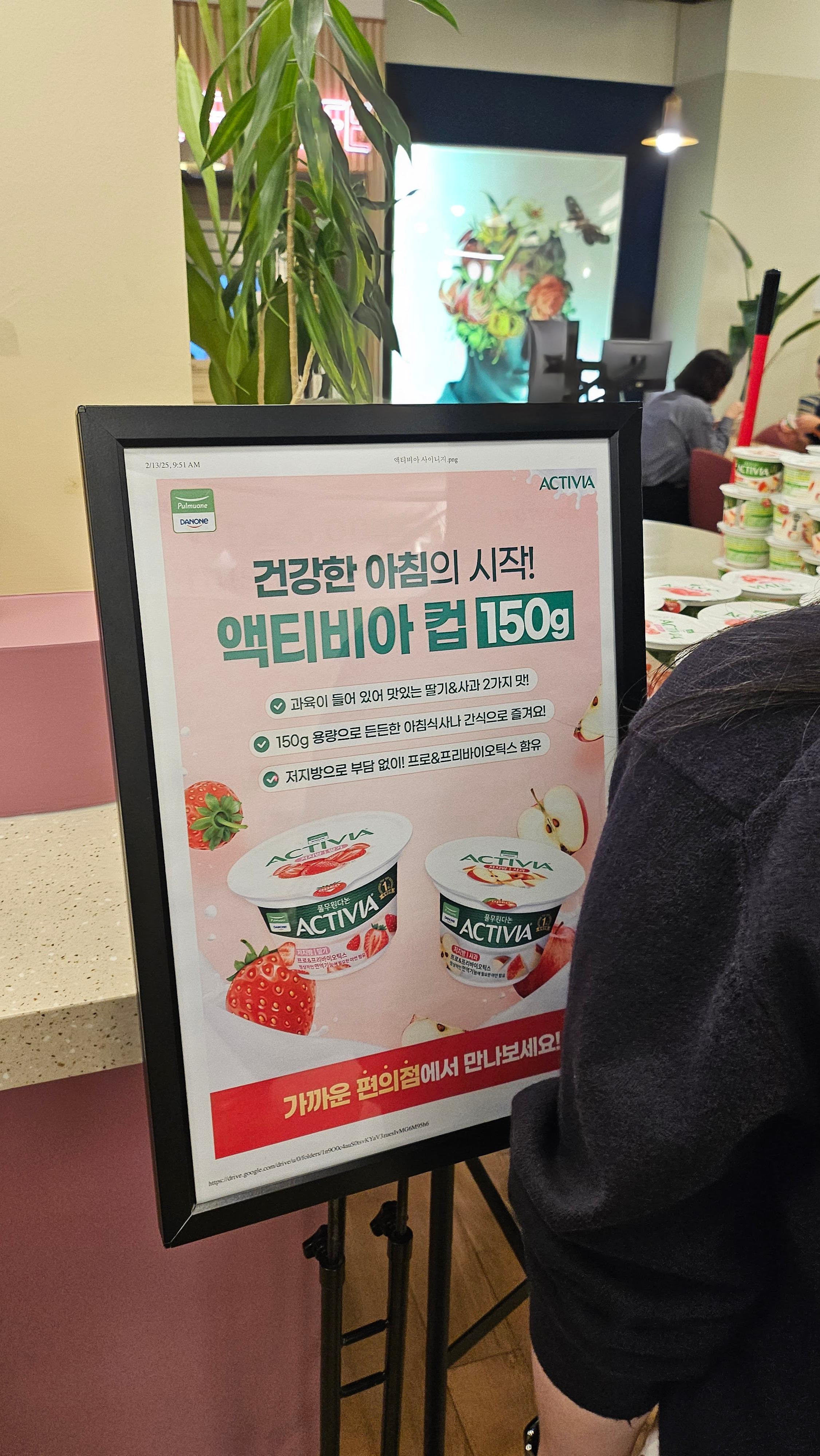 아무리 바빠도 아침은 챙겨야 하니까, 지금 바로 위워크 라운지로 오세요~! 액티비아와 함께 간편하고 건강하게 아침식사 하세요! 🥄넉넉한 150g 용량이라 든든하게! 🍓상큼 달달한 과육이 들어있어 맛있는 딸기맛 or 사과맛🍎 😋 저지방으로 부담 없이! 프로&프리바이오틱스까지 함유! 🍀정상적인 면역 기능에 필요한 아연 함유! 바쁜 아침에 간편하고 든든한 아침식사로, 근무 중 출출할 때 건강한 간식으로 딱! NEW 액티비아 컵 150g 🛒지금 바로 가까운 편의점에서 만나요!