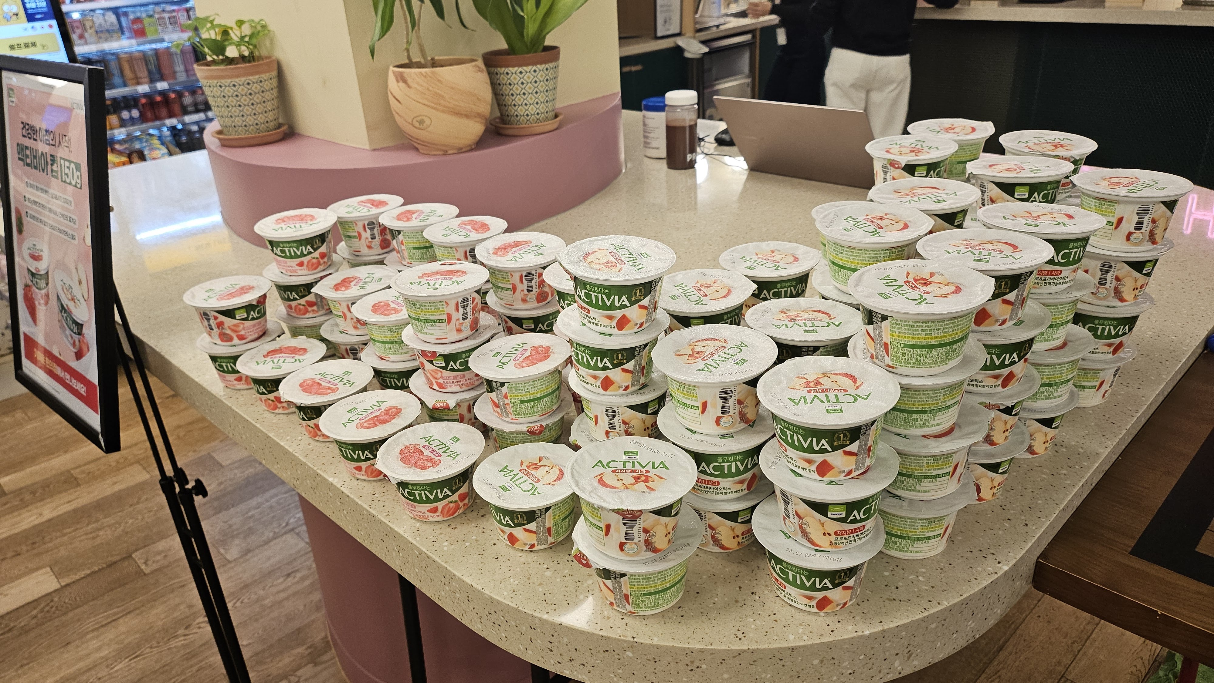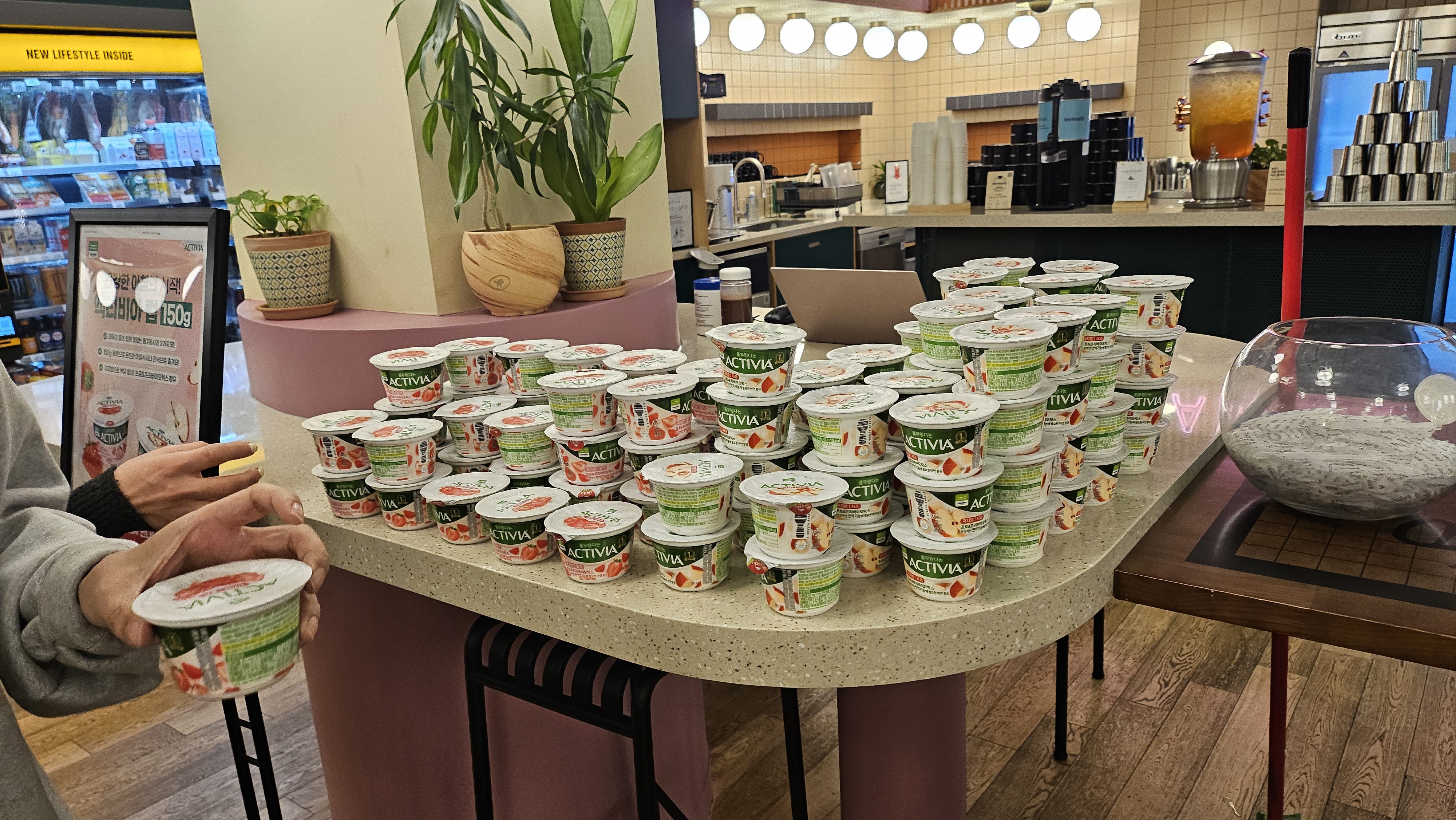 산처럼 쌓여있는 요거트들.